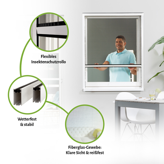 Mit dem Insektenschutzrollo Fenster „Classic“ kannst du entspannt durchatmen: Während frische Luft frei in deine Räume strömt, bleiben Mücken und Fliegen zuverlässig draußen. Besonders praktisch: Das Rollo lässt sich individuell in Höhe und Breite kürzen und passt damit flexibel zu vielen Fenstergrößen. Mit nur einem Handgriff bedient, schließt die Bürstendichtung lückenlos ab – für zuverlässigen Schutz und entspannte Momente am offenen Fenster.