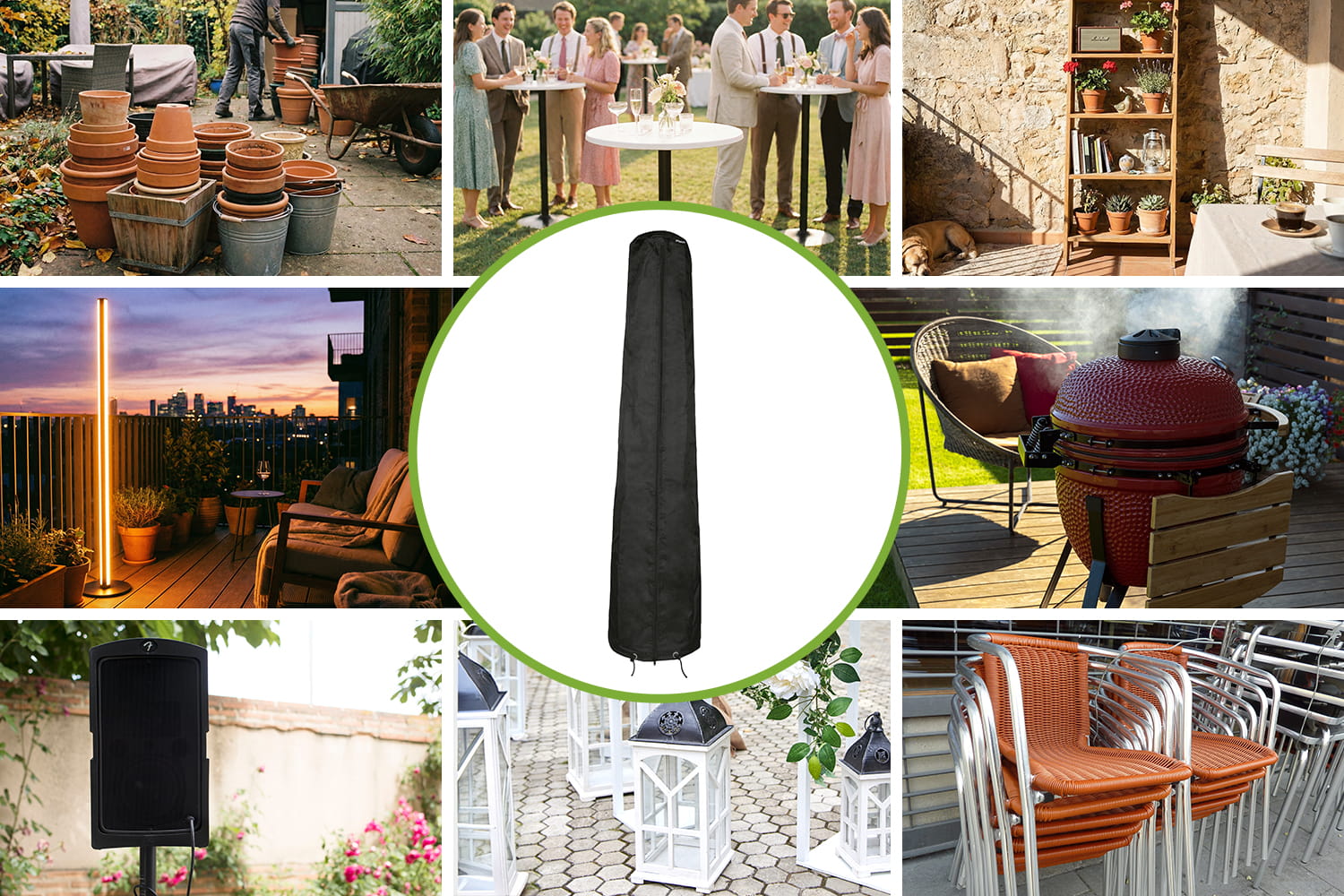 Die Schutzhüllen aus wasserabweisendem Polyester bieten sicheren Schutz vor Wind, Regen und Schmutz. Ob als Abdeckung für Gartenmöbel, deinen Grill, Sonnenschirm oder Terrassenheizer - die Hauben in zahlreichen Größen sind individuell nach eigenen Belieben einsetzbar. Die integrierten Reißverschlüsse und Gummischnüre ermöglichen eine besonders unkomplizierte Handhabung und einen sicheren Halt der Schutzhüllen.